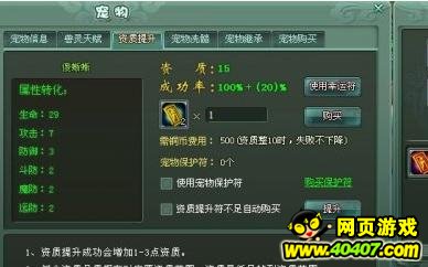 资质提升的时候,可以购买资质提升符和资质幸运符,达到100%的成功率的,像这样子:
