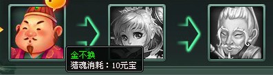 那么我们就来看看该怎么猎魂,本人因为合区之后发了1千的绑定元宝在开放这个系统之后就尝试了,自己总结了下经验。就是猎魂的时候最好是找几个好点的朋友一起猎,这样几率会大点,而猎魂它是从最垃圾开始猎,慢慢才会显示后面几位,也只有最后2个位置的头像才会出橙色的魂。