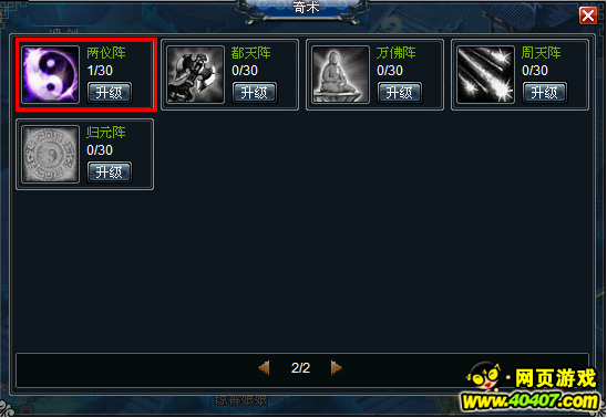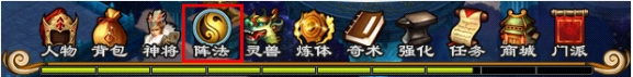 玩家必须升级奇术中的阵法,才能在界面中《阵法》按钮那里进行布阵: