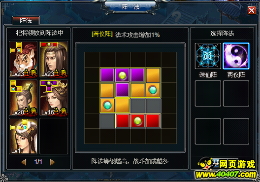 进入阵法界面后,根据自己所需要的效果,进行布阵