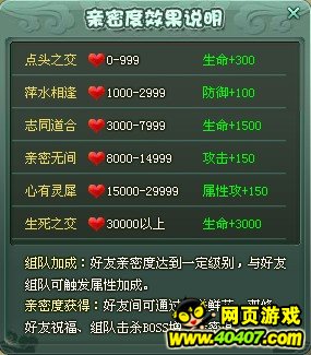 3、亲密度获得方法:好友间可通过赠送鲜花、双修、好友祝福、组队击杀BOSS增加亲密度。