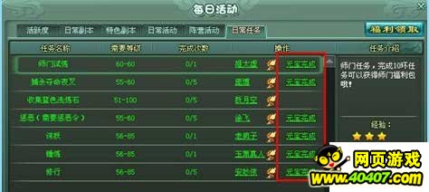 点击之后就会看到,日常需要完成的一些任务,包括师门、惩恶、诛妖、锤炼、修行等: