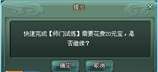 这些任务的后面都会有一个元宝完成,只要点击,就会出现一个快速完成任务的对话框: