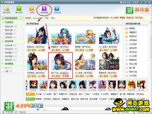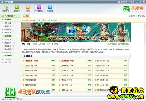 4399游戏盒为广大游戏玩家专门准备了网页游戏频道,其中分门别类的为我们准备了许多热门页游。本文介绍的《梦幻飞仙》当然也可以在其中找到,在4399游戏盒玩网页游戏,最大的特色就是免费注册一个4399游戏盒账号后,即可畅玩里面所有的网页游戏而不需频繁注册账号了!