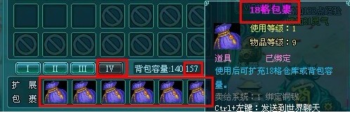 拥有18格包裹,再也不会被背包物品太多而烦恼,49(初始)+6*18=157格;157格的背包想放什么就可以放什么。