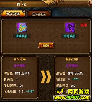 装备精铸系统,是可以通过熔炼同类别的装备,来提升所需要强化的装备的属性。被熔炼的装备等级越好,所提升的属性越多。