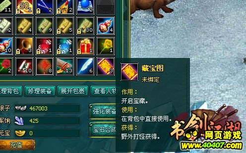 在《书剑江湖》之中,无论是野外打怪还是任务副本都可以获得藏宝图,可以说门槛非常低,完全不用花费玩家的金钱。如此一本万利的买卖,怎么能让人淡定,赶紧拿起手中的铲子,奔向小康之路吧!