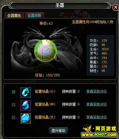 能量结晶(大) 增加圣器经验50点,可通过屠龙获得