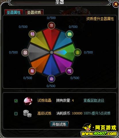 可提升2点圣器资质(有几率失败),可通过击杀副本BOSS掉落