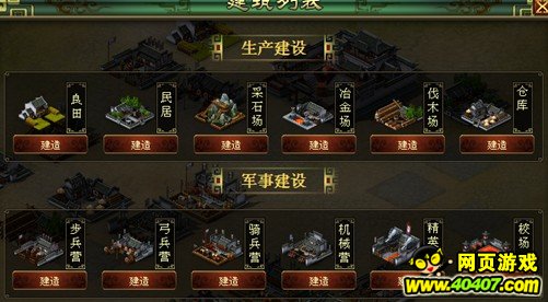 建造弓兵营可以招募短弓兵、长弓兵、强弩兵