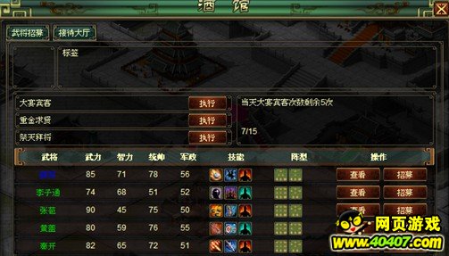 玩家在城镇的酒馆中可以招募武将。