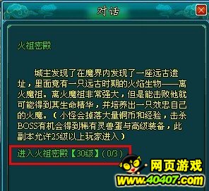 火祖密殿是一个30级的5人团队副本,副本里的怪物均为主动攻击。