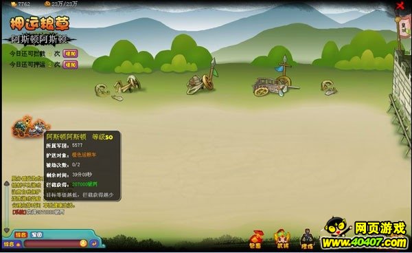选择需要押运的运粮车之后,接下来就是紧张刺激的押运之旅。在押运之旅中,玩家需要保护自己的运粮车到达终点,在此期间会遭受到来自各方面的拦截。