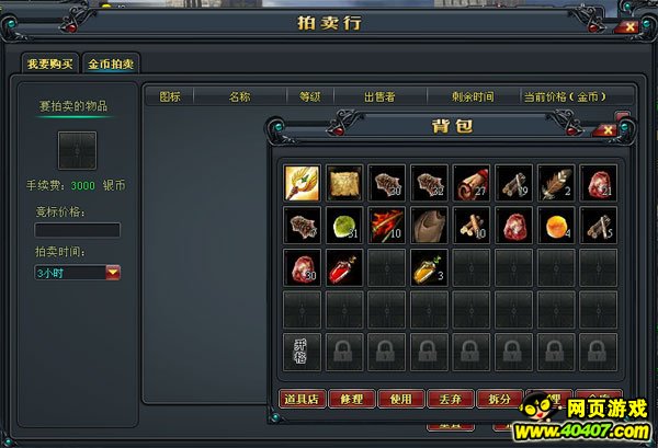 将背包中的物品直接拖拽到拍卖行,设定好价格即可进行拍卖