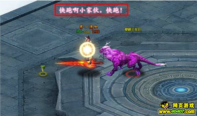 当某个玩家身中下图的光效,且现如图提示后,赶快跑吧,BOSS会吸收自身攻击500%的血量。