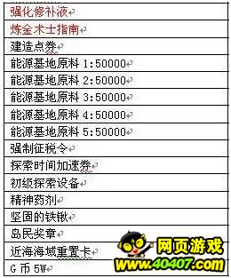 三、奖励道具列表: