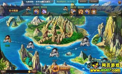 麦哲伦沉船关卡颇具难度,由4名杂兵和一名BOSS构成。前两名杂兵大约与玩家45级实力相近,中间两名杂兵与玩家55级实力相近。BOSS的战舰拥有超高的耐久力和较强的攻击力,同时还拥有出色的闪避能力。因此玩家应当尽量提升舰船的攻防和闪避能力,同时酌情升级岛民和纹章。
