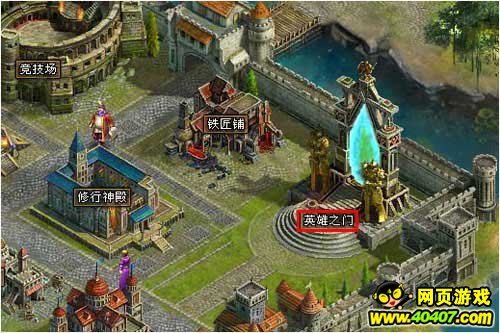 进入副本:点击内城建筑“英雄之门”即可打开多人副本界面。