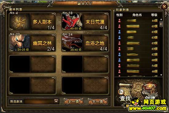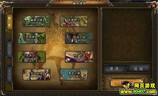 a) 选择副本:玩家可以在这里选择要去的副本地图。