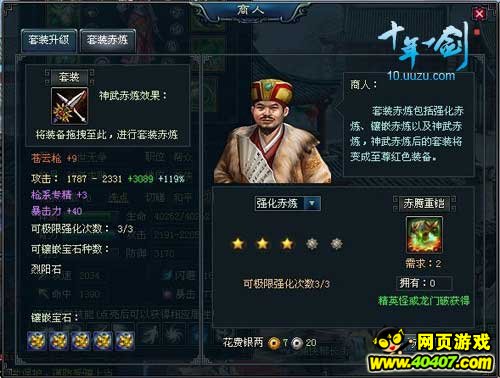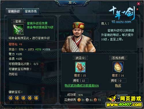 在《十年一剑》中,一套高属性的极品套装必不可少,当你收集齐了一套装备后第一件要做的事情就锻造他们。在这个游戏里面提供了7种锻造方法,强化、极限强化、赤炼、精炼、镶嵌、融合,还有5中附加功能,打宝石镶嵌孔、宝石清洗与合成、装备升级、装备回炉,可谓是装备的方方面面都有涉及到。下面,就来为大家具体讲解一下各个功能和锻造技巧。
