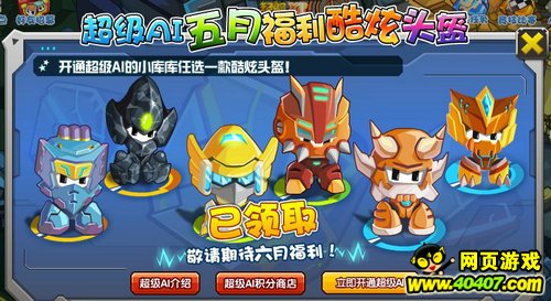 活动介绍:活动期间,拥有超级AI的小库库可以在以下6款头盔中任意领取一个。
