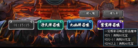 第四种为V1-V360元宝,V4以上40元宝获取。(强力推荐,出好魔神的概率很大)
