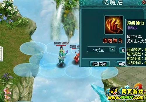 技能唤醒,是玩家通过使用刷新忆魂石,使灵宠得到更为高级的技能,刷新的次数越多,得到顶级技能的概率也就越高。灵宠技能每唤醒一次,也都将消耗掉一个忆魂石。