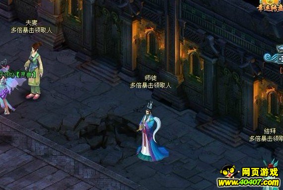 这一层为公共地图,所有进入副本的玩家都进入到一个地图中,并且会首先经过一个补给区。在补给区中,如果队伍中有同一帮会、夫妻、结拜、师徒,都可以在多倍暴击领取人处领取多倍暴击加成,进入战斗后点击特殊转盘将打出高伤害。