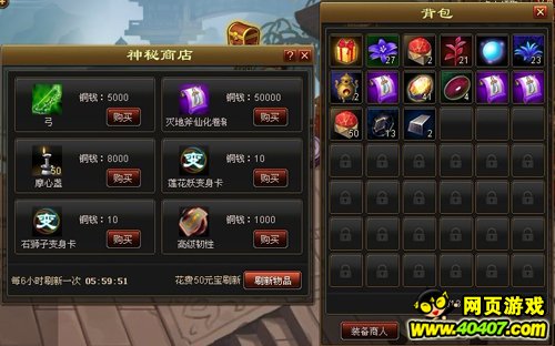 神秘商店里好东西就多啦,各种变身卡、材料、仙化卷轴、装备、状态符等。