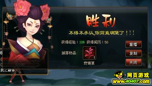 战斗结束后,会出现胜利面板,显示角色获得的经验和奖励。