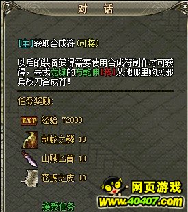 当下次合成装备需要苍虎之皮,山贼匕首,刺蛇之鳞的时候您可以点击您所需要的人物就会自动寻路的。