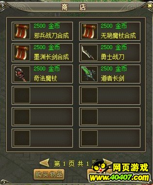 但是合成的武器和合成符是要玩家自己在商店买的哦,都在玩家的包裹里面的哦