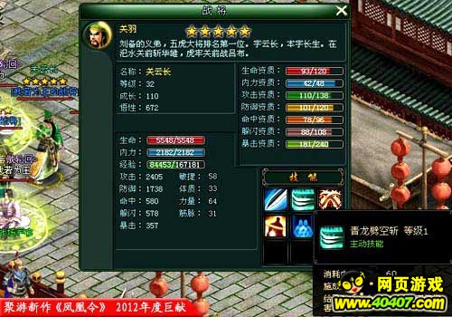 在《凤凰令》中,战将的技能达到了数十种,主要分为主动技能和被动技能两大类,随着战将等级的提升,不仅可以开启更多战将技能格,技能等级和威力也会相应提升。游戏中,战将的技能格最多可以达到9个,一般战将初始技能为两个,五星战将初始技能最多可以达到4个。