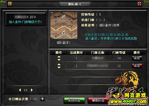 高难度组队副本。在规定的时间内,通过组队玩家的同心协力合作无间,由玩家击破沿途的小怪以激活高难度的boss。若玩家能通过boss的试炼,队伍中的所有玩家皆可共享丰厚的特殊战利品奖励。组队期间,玩家可互相看到彼此进度,在webgame上完美实现MMO的流畅交互。