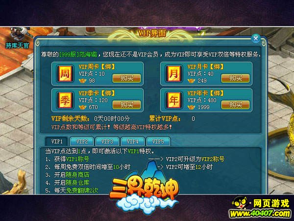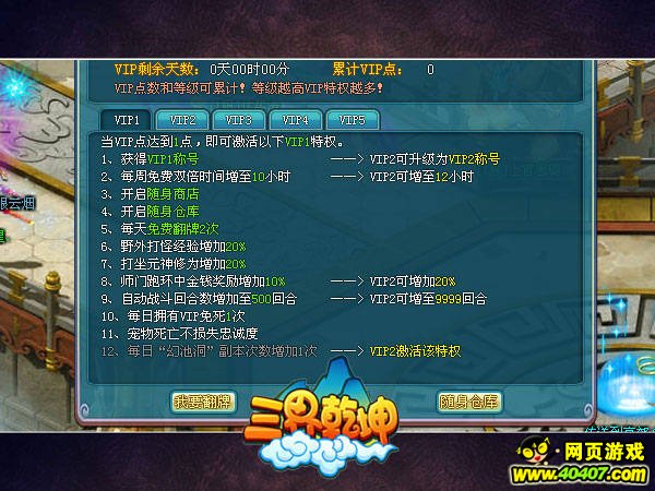 体验VIP,拿超值奖励,享受荣耀的称号,拥有无限游戏奖励。尽在玩会儿《三界乾坤》!