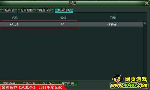 《凤凰令》中,一支队伍可以容纳最多五名玩家。其他玩家若是想要加入队伍,需要点击队伍成员发送“申请组队”即可。不过,只有队长才有接受或者拒绝申请的权利哦!