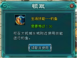 1、在太机城的水域附近点击技能即可开始钓鱼。每次垂钓需要消耗一个“鱼钩”。