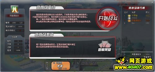 进入竞技场界面后,你可以参加竞技场的比赛,争夺每个赛季的冠军奖励。点击“开始战斗”就能快速开始战斗了。