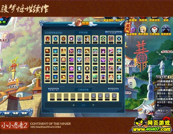 《小小忍者2》是一款国内首创以动漫为主题的网页游戏,其强大的角色换装系统将彻底颠覆传统网页游戏“一角色,一职业”的限制,让玩家在享受网页游戏带来的便捷的同时,充分体验丰富的动漫人物所带来的不同乐趣,同时《小小忍者2》还独具二大特色: