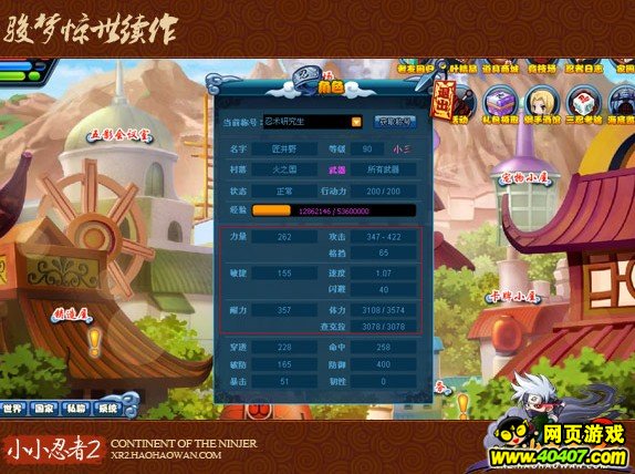 耐 力:对角色人物的最大体力值和最大查克拉值产生影响。详细影响的数值由角色穿戴的外套所决定。