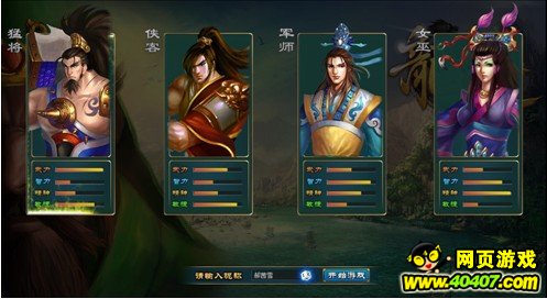 侠客:汉末宦官乱政,百姓被士族与官吏盘剥得无法生存。主角在年轻时因一时愤怒而杀死了一名官吏,从此开始了游侠的生活,游走于各地,率性而为,令一些地方士族与官吏惧怕。以敏捷见长,一身武功轻灵犀利。令对手防不胜防。