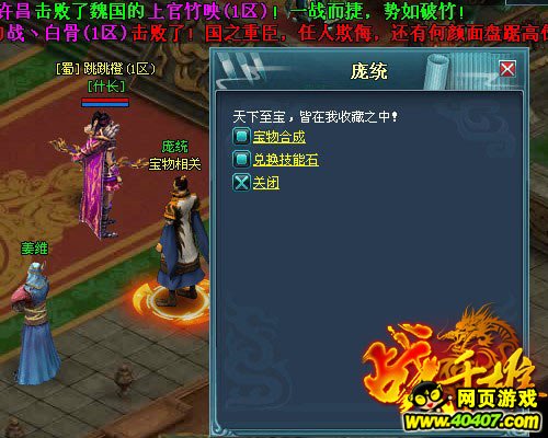 在《战千雄》中,融合法宝可以通过两种方式:一是在国家主殿中的【宝物相关】的NPC处进行融合,另外一种是在法宝界面中的“宝物合成“出进行合成。两种方式成功率一致,不过宝物合成更为方便。