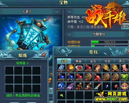 在游戏中,每次合成宝物都有一定的成功率,合成失败之后,玩家将失去所有材料。不过,高风险的投入总是伴随着高额的收获,玩家若是合成宝物成功,就能够获得大量的属性加成,大幅度提升自己的实力。