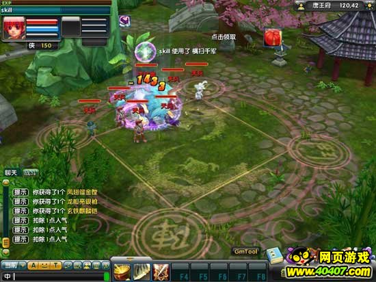横扫千军:气血高于40%时,消耗一定气血同时对敌人三个目标进行攻击,使用后需要休息一回合,复活的当前回合无法使用。身陷敌人包围之中,这时的你想成为孤胆英雄吗?使出一招横扫千军,杀出一条血路,这时的你威风凛凛、无人能挡!
