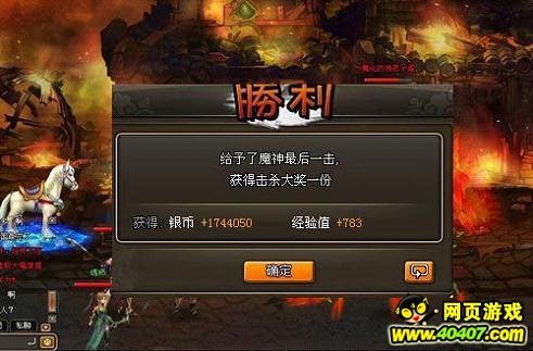 如果你们国家的魔神杀的很快的话,当本国结束的时候要马上进入第2速度的国家,这样你又可以多一回机会给魔神来上最后一刀。还有第3国家,其实你的机会还是很多的,不要想着本国结束点击领取人物奖励,因为那是一点用没有的,平白浪费时间,钱和经验其实都已经到你手里了,系统只是给你做了个统计而已。如果你的攻击够高,速度够快,算数够好,那么你就尽情的给魔神来上最后一击吧。每个补刀成功银币会达到100万以上,你心动了吗?心动了那就开始行动吧!