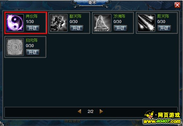 玩家必须升级奇术中的阵法,才能在界面中《阵法》按钮那里进行布阵
