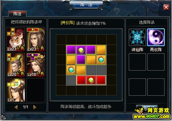 进入阵法界面后,根据自己所需要的效果,进行布阵