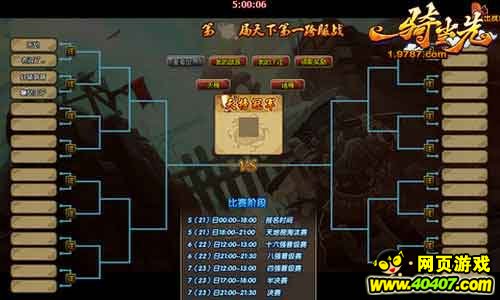 《一骑当先》跨服战一共分为淘汰赛、十六强赛、八强赛、四强赛、半决赛和决赛六个赛段。每轮比赛前,玩家可通过“更新信息”来更新最新的战斗阵型。因此玩家要注意适时调整自己的阵型,最好是先关注对手之前的战报,了解清楚对手的武将及战斗实力,并根据自己的武将特点,排出对阵相克制的阵法。当然,对手也可能更换武将和阵法,所以靠观察个别战报来判断是不足够的,还可以通过打听等多种方式收集情报信息。总而言之,灵活动态布阵,是关键。