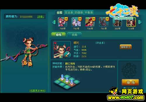 最后,神将必须要选好。选一个好的神将,至关重要。因为《七十二变》,是以变身为主的,当主角色变身成神将的时候,会用神将的技能。所以,选择什么类型的神将,就变得非常非常重要了。最好队伍中的神将能够相互配合,血少的躲在肉盾后面,是比较常规的布阵方式,当然,不排除有很牛的玩家,把血少的放最前面,只求先出手秒掉对方的有生力量。神将目前最高品质为金色。不过招到一个却是比较困难的。但其超凡的属性,确实容易让很多玩家垂涎三尺。如果可能,大家可以向着金将努力。如果大家觉得招募实在很困难的话,一定要盯准《七十二变》发放仙狐的活动,争取拿到一只。这可是金将,并且技能也很不错呢。