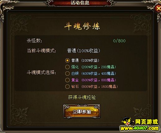 100%是每个怪物1点斗魂经验,同理800%就是每个怪物8点斗魂经验。这要靠大家自己选择了。